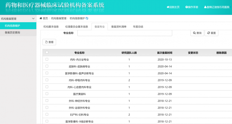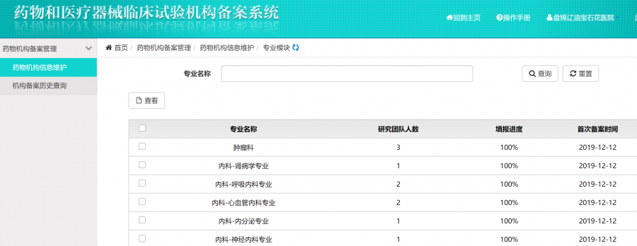 完成药物临床试验备案专业6个,医疗器械临床试验备案专业15个